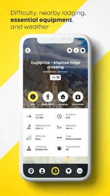 Приложението Adventurer предоставя изчерпателна информация за всеки маршрут, за да сте подготвени за всичко. Ще откриете ключови параметри като дължина, прогнозна продължителност, денивелация, трудност и специфики като възможност за къмпинг или дали е подходящ за домашни любимци. Интерактивните карти разкриват водни източници, заслони и атракции по пътя, а детайлните описания ви помагат да се ориентирате безупречно. Ще получите информация за необходимо оборудване, потенциални опасности, актуална прогноза за времето и снимки, които дават реалистична представа за предстоящия пейзаж.