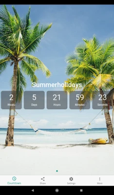 Нещо повече, приложението ви дава пълна свобода. Можете да търсите сред над 3,5 милиона онлайн изображения, за да намерите перфектния фон, да качите своя собствена снимка от галерията си или дори да заснемете нова директно от камерата. След като таймерът ви е готов, споделете вълнението си с приятели и семейство в социалните мрежи. Бъдете сигурни, че няма да пропуснете нито един важен момент благодарение на интелигентните напомняния. Добавете удобни уиджети към началния екран и се насладете на динамични живи фонове, които постоянно ви информират за оставащото време до вашето приключение.