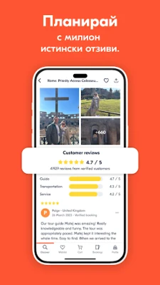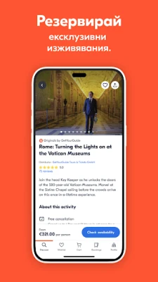 Открийте света по свой начин с GetYourGuide – вашият верен спътник в планирането на незабравими пътешествия. Независимо дали мечтаете за приключения, културни открития или гастрономически изкушения, ние превръщаме всяко пътуване в уникално преживяване. С достъп до над 200 000 дейности по цял свят, GetYourGuide ви дава свободата да изследвате емблематични забележителности и скрити съкровища, съобразявайки се напълно с вашите предпочитания и ритъм. Забравете за стреса от организацията и се потопете в магията на новото.
