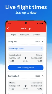 Вече сте резервирали? Jet2 се превръща във вашия незаменим спътник на всяка стъпка. Преди заминаване, с myJet2 акаунт, управлявайте резервациите си, регистрирайте се онлайн, съхранявайте цифрови бордови карти в Google Wallet или Samsung Wallet и добавяйте основни услуги като места и допълнителен багаж. Нуждаете се от помощ? Нашата поддръжка е на разположение 24/7 чрез WhatsApp или вградения чат. По време на пътуването, всички важни детайли – от статус на полета до данни за хотела и трансфери – са удобно събрани на едно място. Лесно управлявайте пътнически документи и се информирайте за безопасността. Революционният ни инструмент за превод ви помага да общувате на местния език, сканирайки менюта или табели за моментален превод. След като се завърнете у дома, Jet2 продължава да ви вдъхновява, улеснявайки планирането на следващото ви мечтано приключение.