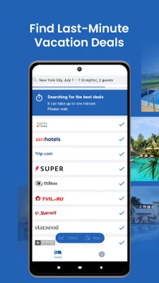 Приложението събира най-примамливите оферти и намаления от платформи като HomeToGo, Lodgify, Southwest Vacations, Klook, AlluraDirect, Rentalia и CozyCozy, осигурявайки ви несравним избор. За да направите избора си още по-лесен, Vacation Rentals Last Minute ви дава възможност да запазвате предпочитани обекти и бързо да ги сравнявате. Когато откриете перфектната оферта, резервацията е само на няколко докосвания разстояние, осъществена директно през приложението. Преоткрийте удобството и вълнението от планирането на пътешествия в последния момент!