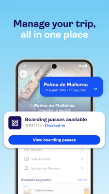 Дори когато сте вече на мечтаната си почивка, поддръжката е винаги на един клик разстояние. Насладете се на 24/7 клиентска помощ чрез вградената функция за чат на TUI. Екипът е на разположение по всяко време и навсякъде, за да отговори на въпроси относно вашите полети, билети, хотели или допълнителни услуги. Освен това, TUI ви дава достъп до пълна гама от TUI Experiences – от обиколки на острови и живописни маршрути до екскурзии с гид до емблематични забележителности. Улеснете пътуването си с полезни екстри като дигитални бордни карти, проследяване на трансфери, избор на място в самолета, възможност за поръчка на пътни пари и резервация на паркинг за летище или хотел, гарантирайки спокойствие от началото до края.